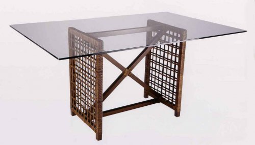 Estrutura: Madeira de lei, junco natural trançado e vidro.